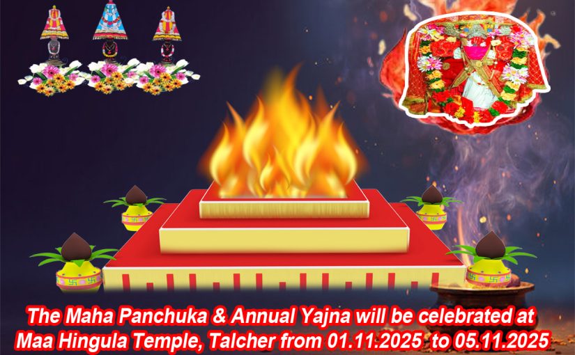 The Maha Panchuka & Biswa Shanti Maha Yajna (Annual Yajna) will be celebrated at Maa Hingula Temple, Talcher from 01.11.2025 to 05.11.2025 (5 days).